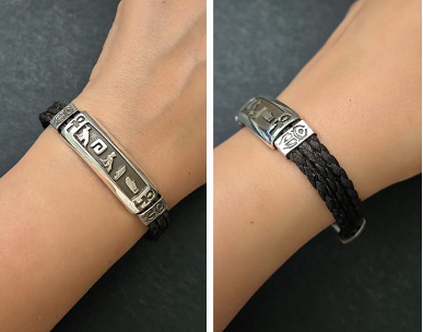 Pulsera de cuero con el nombre en jeroglifico en plata